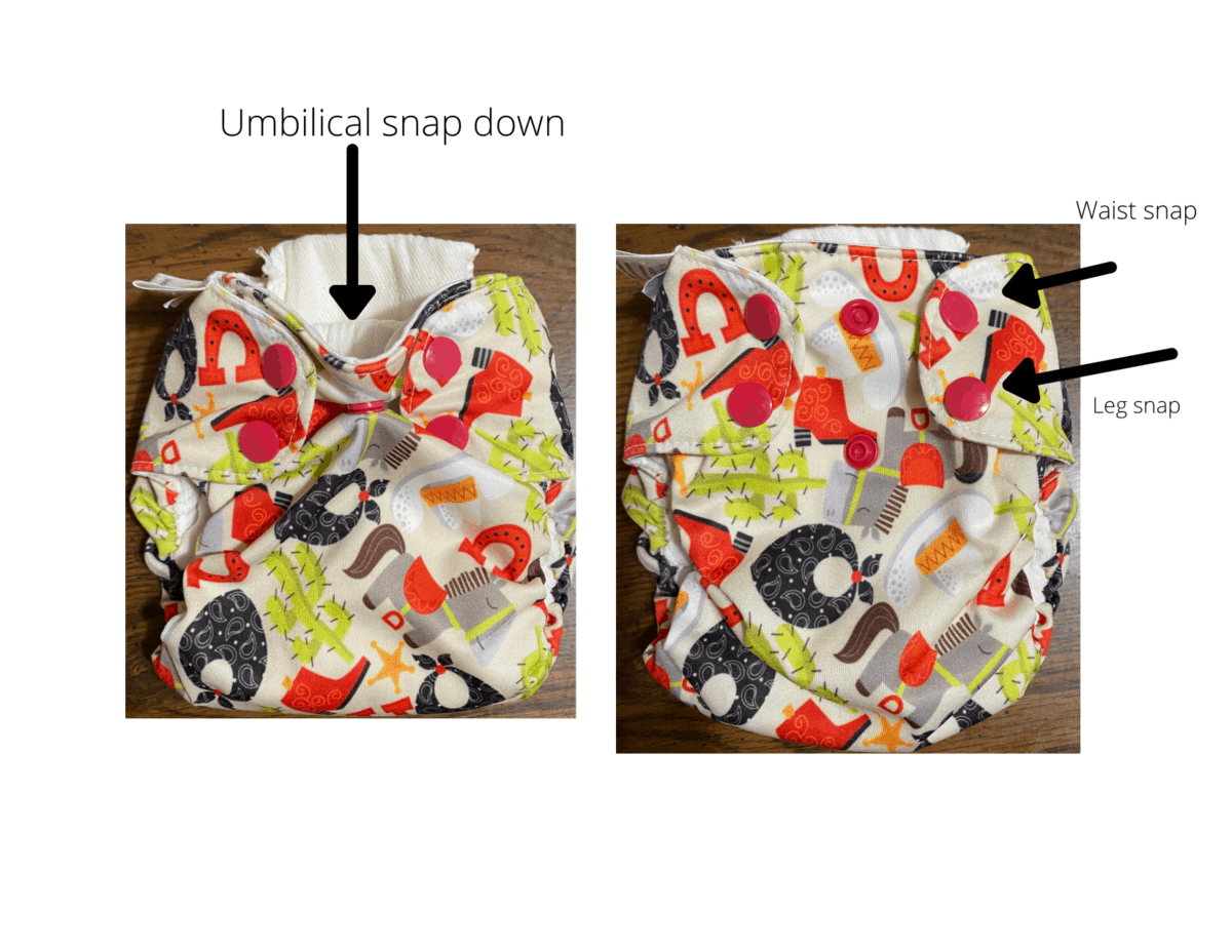 The snap version of the Thirsties natural newborn all-in-one has only 1 snap on each wing that adjusts both the waist and the legs which can also eliminate some of the confusion for users with less experience.